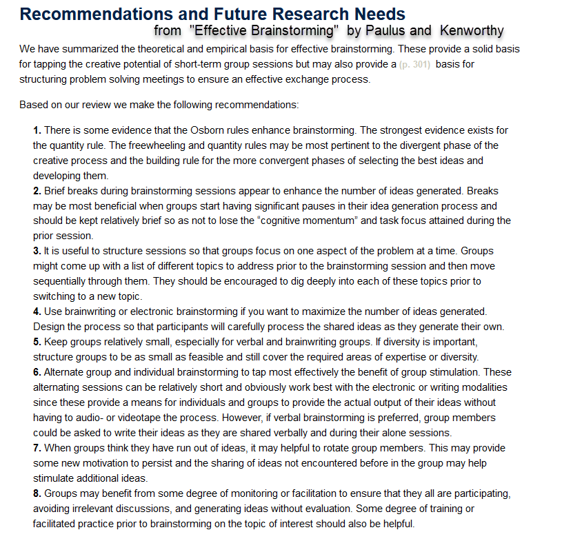For more on brainstorming, here is a summary of the state-of-the-art evidence on how to do it.