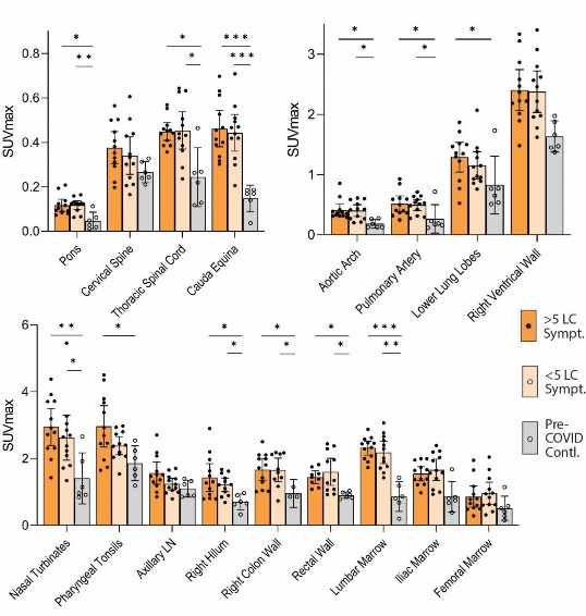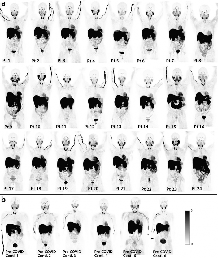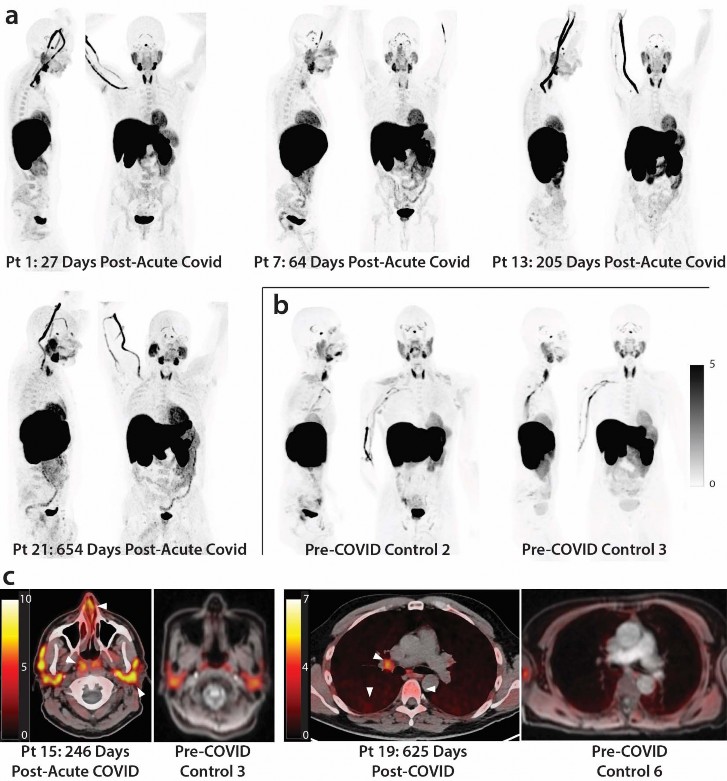 - tracer uptake was increased in participants imaged up to 2.5 years following SARS-CoV-2 infection. We