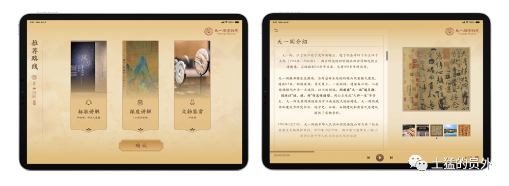 一个iPad作为主要载体,搭配耳机,播放的是关于当前文物的讲解视频。