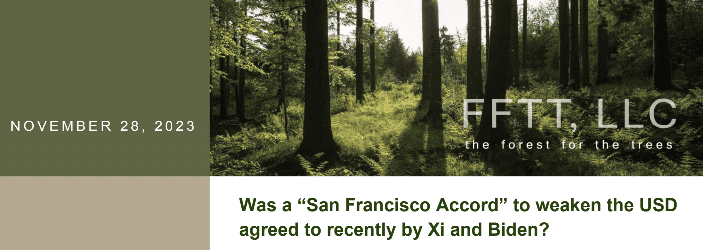 Adding to our “Spidey sense” that some sort of agreement on the USD had been reached by China and the US in San Francisco was this announcement, made just five days after the meeting: