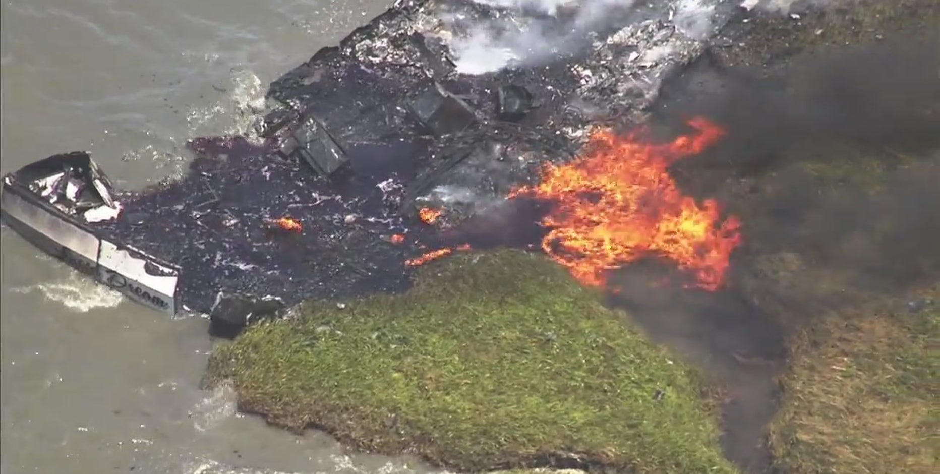Two people jumped ship after their boat caught fire off the shore of Redwood City on Monday afternoon, according to the U.S. Coast Guard.