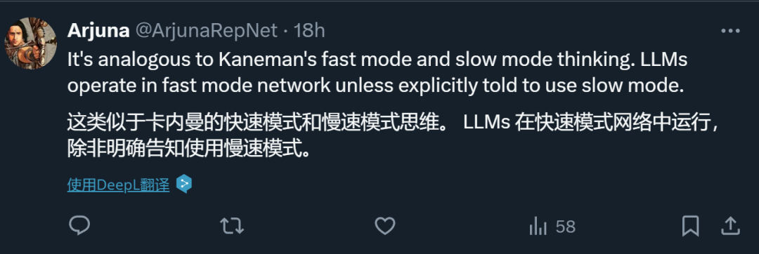 这就类似于它有两套系统:快速、依靠直觉的系统 1 和较慢、较具计划性且更仰赖逻辑的系统 2,平时默认使用系统 1。