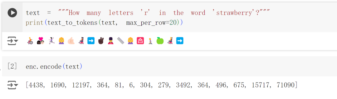 按照小程序被设计的表示方法,「How many letters 'r' in the word'strawberry'?」在 LLM 看来是这样的: