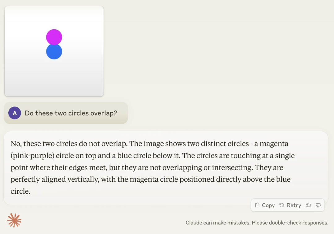 综合最近的新闻来看,我们会发现一个有意思的现象:一方面,大模型都能在人类奥数中拿银牌了;而另一方面,它们又在数数、比大小方面集体翻车。类似的例子还有不会玩几岁小孩都会玩的井字棋,不会判断两个圆是否重叠等。