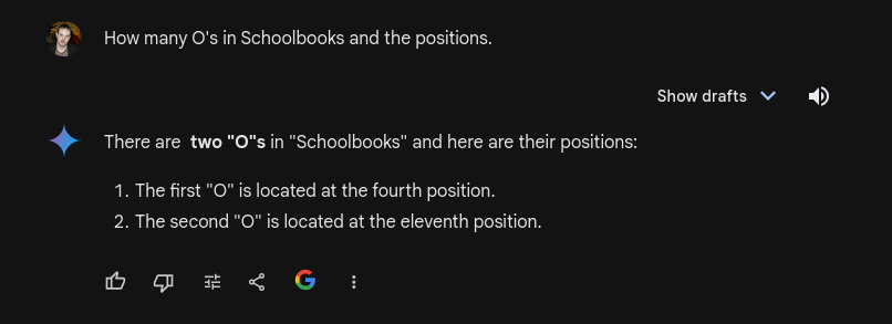 除了草莓 (Strawberry) 之外,还有一个很好的例子就是「Schoolbooks」这个词,AI 模型会把它分为 school 和 books 两个 token。