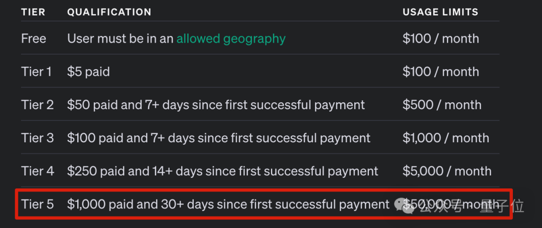 API访问权限将首先给Tier 5级用户,也就是已经在OpenAI API上花费超过1000美元的人。