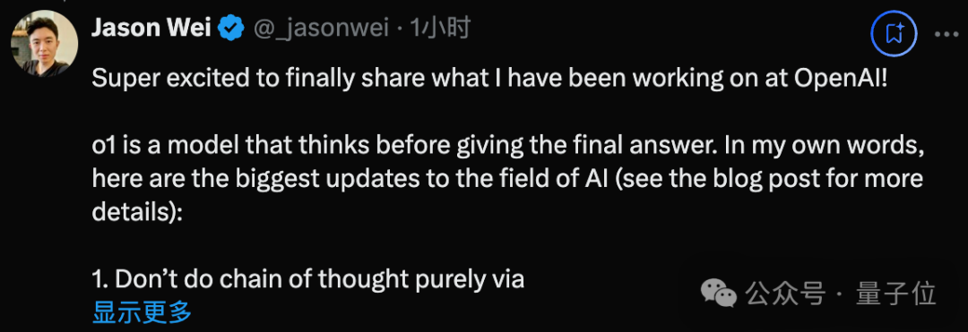思维链提示方法的原作者Jason Wei表示,这一次不是纯粹通过提示来完成思维链,而是使用强化学习训练模型以更好地执行链式思考。
