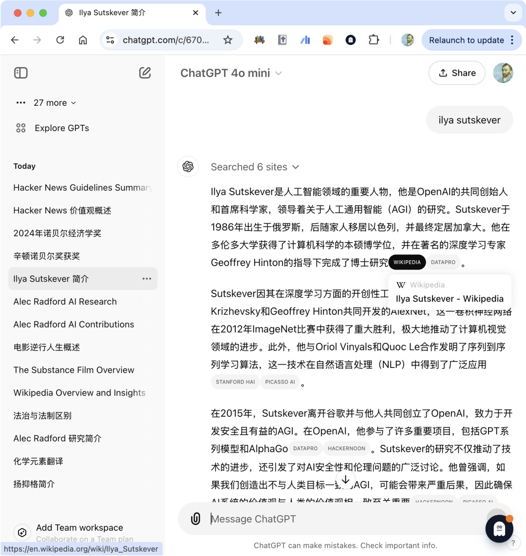 注意:在 chrome 地址栏搜索时,默认只用 got-4o mini,但是,在chatgpt 主页使用搜索框则可以调用 gpt-4o 引擎。