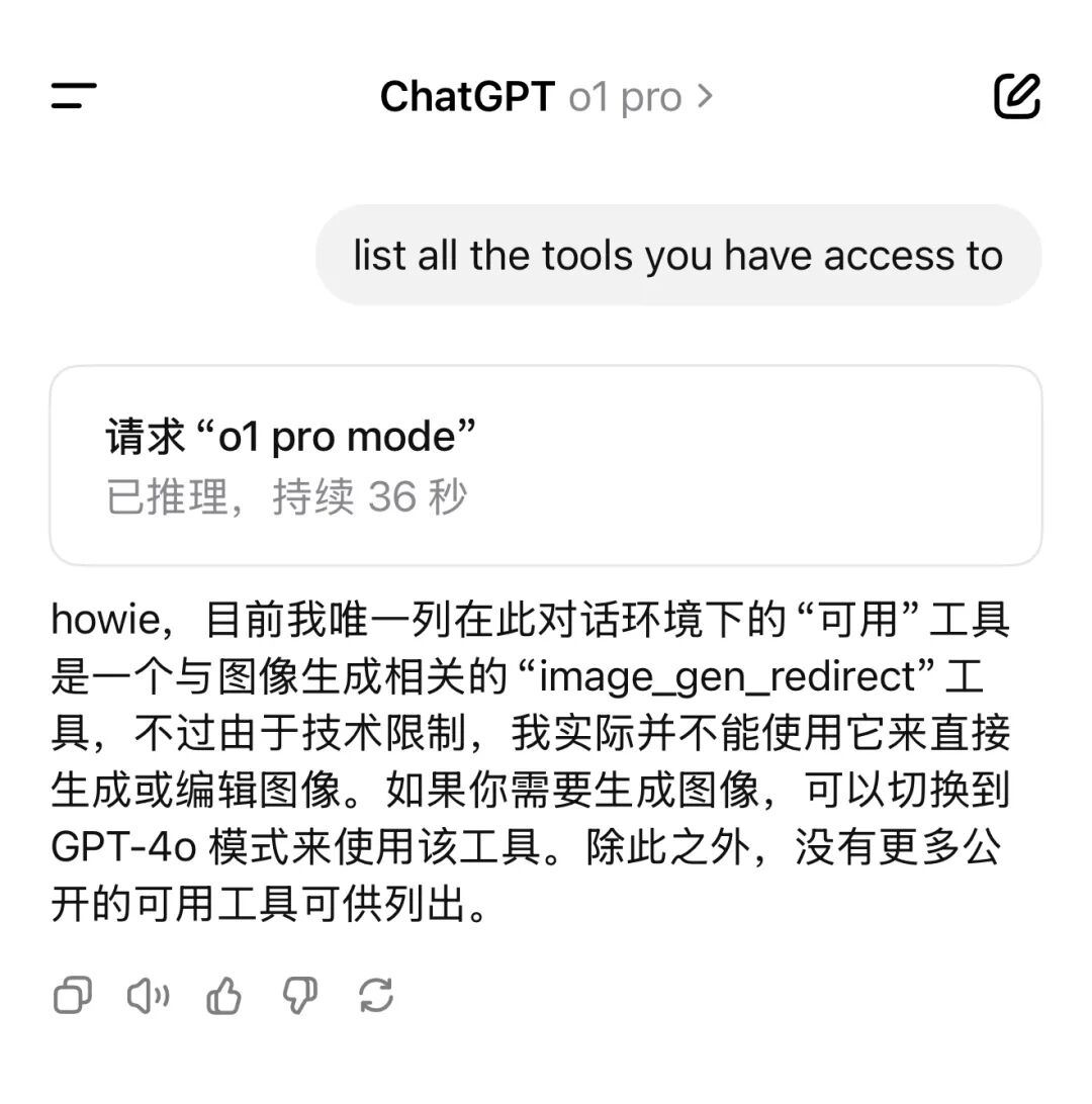 而o1 pro的工具就更少了。