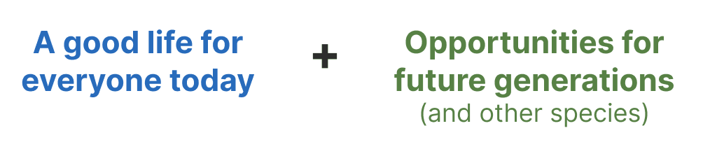 To me, sustainability means more than that. Yes, I care deeply about the environment: to protect opportunities for future human generations that come after us, but also to preserve a liveable world for other species and ecosystems. But I also care about the billions of people who are alive today. I want them to be able to live a good life; healthy, well-fed, poverty-free, content, and with opportunities to flourish in whatever way they wish.