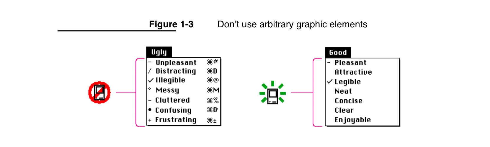 I was reading Macintosh Human Interface Guidelines from 1992 and found this nice illustration: