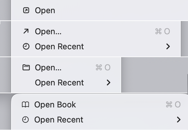 I’m not saying there’s an obvious metaphor for “Open” Apple missed. There isn’t. But that’s the point: if you can’t find a good metaphor, using no icon is better than using a bad, confusing, or nonsensical icon.