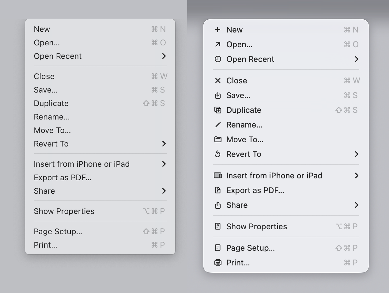Fast forward to 2025. Apple releases macOS Tahoe. Main attraction? Adding unpleasant, distracting, illegible, messy, cluttered, confusing, frustrating icons (their words, not mine!) to every menu item:
